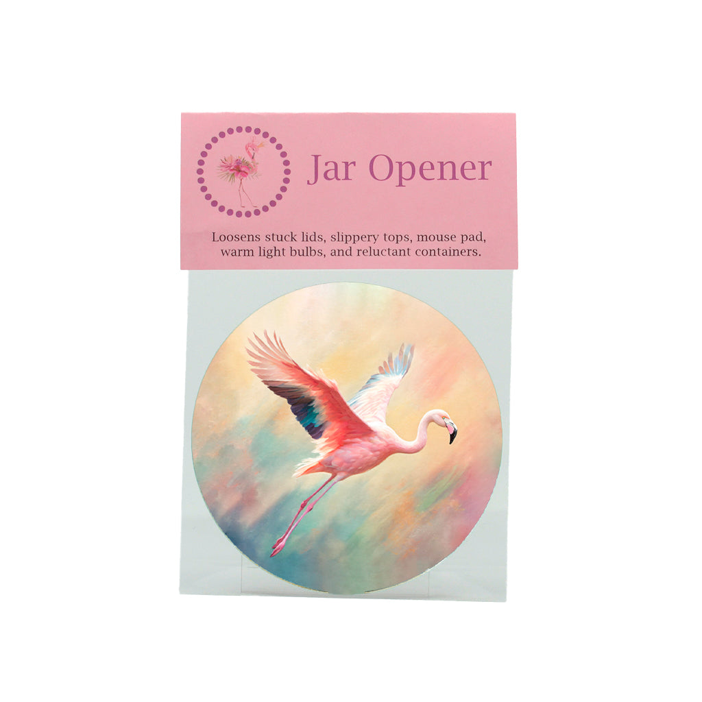 JAR OPENER - This jar opener loosens stuck lids, slippery tops, warm light bulbs and reluctant containers. This would also make a cute mini mousepad for a computer. Another good idea is to use it as a coaster. The top surface is a polyester with an open cell tan rubber backing. The jar opener is packaged in a clear bag with a top information card for hanging. Size: 5” x .06”