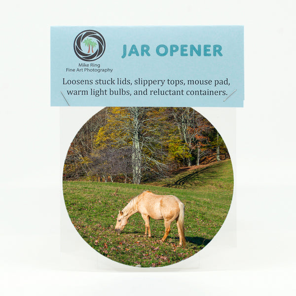 JAR OPENER - This jar opener loosens stuck lids, slippery tops, warm light bulbs and reluctant containers. This would also make a cute mini mousepad for a computer. Another good idea is to use it as a coaster. The top surface is a polyester with an open cell tan rubber backing. The jar opener is packaged in a clear bag with a top information card for hanging. Size: 5” x .06”