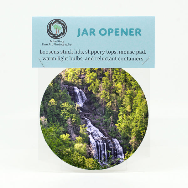 JAR OPENER - This jar opener loosens stuck lids, slippery tops, warm light bulbs and reluctant containers. This would also make a cute mini mousepad for a computer. Another good idea is to use it as a coaster. The top surface is a polyester with an open cell tan rubber backing. The jar opener is packaged in a clear bag with a top information card for hanging. Size: 5” x .06”